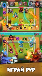 Игра предлагает разнообразные режимы, включая клановые войны, гонки за славой и PvE-испытания. Участвуйте в событиях, чтобы получать редкие награды и усиливать свою армию. Rush Royale — это не просто игра, а целый мир, где стратегия и командная работа решают всё.