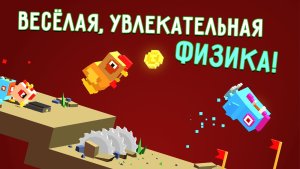 Flippy Hills радует выбором персонажей — куриц в разных костюмах, включая забавную Бэт-Птицу. За монеты, заработанные в игре, вы можете открывать новых героев. А фраза "основано на реальных событиях" и веселая музыка на заставке поднимают настроение с первых секунд.