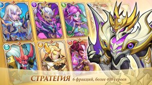 В игре представлено более 400 героев, каждый из которых принадлежит к одной из шести фракций: Тьма, Свет, Лес, Бездна, Крепость и Тень. Каждый герой обладает уникальными навыками и ролями, что позволяет создавать бесконечное количество стратегий. Вы можете улучшать своих героев, экипировать их магическим оружием и комбинировать способности для достижения максимальной эффективности.