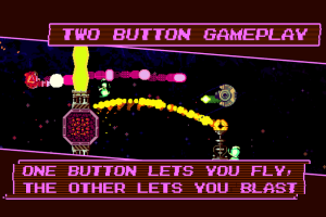 Управление в RunGunJumpGun предельно простое: одна кнопка отвечает за полёт, другая — за стрельбу. Однако за этой простотой скрывается сложность: вам нужно одновременно избегать шипов, ракет и других опасностей, а также собирать атомики — ключевые элементы для открытия новых уровней. Каждый уровень требует точности и быстроты реакции.