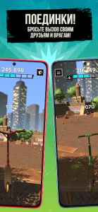 Touchgrind Scooter предлагает несколько захватывающих режимов. Отправьтесь в свободные заезды, чтобы оттачивать мастерство, или погрузитесь в соревновательный режим, играя против других участников. Турнирная составляющая игры делает каждую гонку настоящим сражением, где важно не только обойти остальных, но и выполнять трюки, оцениваемые зрителями. Чередование событий, от скоростных участков до зон с препятствиями, добавляет разнообразия и постоянно меняет ритм.