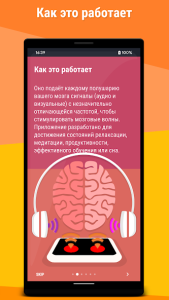 Приложение предлагает несколько программ, каждая из которых направлена на достижение определённого состояния. Вы можете выбрать режим для сна, медитации или повышения креативности. Аудиостимуляция требует использования наушников, а для визуальной стимуляции достаточно закрыть глаза и следовать инструкциям на экране.
