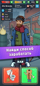 В начале вы оказываетесь на улице без денег и работы. Чтобы выжить, нужно искать подработки, собирать ресурсы и откладывать средства. Постепенно вы сможете накопить на открытие собственного бизнеса, который станет основой вашего будущего успеха. Каждое решение приближает вас к мечте о богатой жизни.