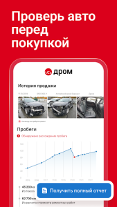 Дром Авто — это приложение, которое помогает вам найти, купить или продать автомобиль. С его помощью вы можете просматривать тысячи объявлений, выбирать подходящие варианты с помощью фильтров и даже проверять историю машины по VIN-коду. Это ваш персональный помощник в автомобильных сделках.