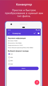 - Конвертировать форматы, такие как MP3, AAC, WAV.