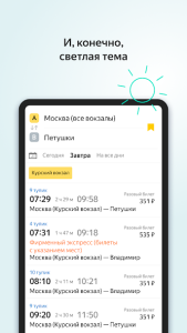 С "Яндекс.Электричками" вы всегда будете в курсе актуальной информации о маршрутах и ценах. Приложение станет вашим надежным спутником, будь то ежедневные поездки на работу или путешествия в новые города.