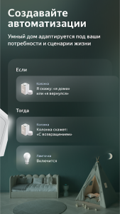 Приложение «Дом с Алисой» – это универсальный инструмент для управления вашими умными устройствами и автоматизации бытовых процессов. Оно объединяет возможности настройки и контроля техники – от лампочек до интеллектуальных колонок и обогревателей. С помощью приложения вы можете создавать сценарии, которые сделают ваше домашнее пространство комфортнее и функциональнее.
