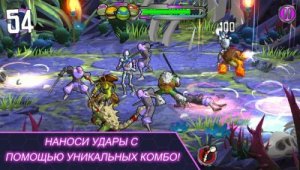 - Персонажи: управляйте Лео, Рафом, Мики и Донни, используя их уникальные боевые стили.