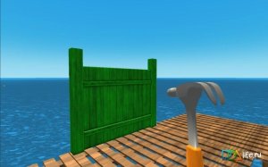 - Создавать инструменты и улучшать плот.