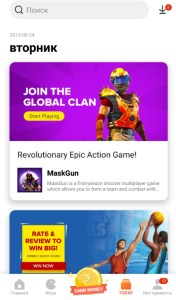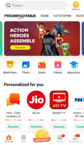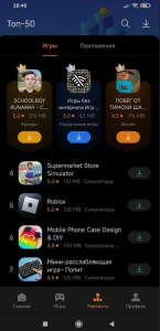 - Искать популярные приложения и игры.