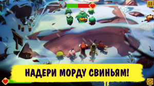 Основой игры стали пошаговые сражения, где вы запускаете птиц по земле, чтобы атаковать свиней. Каждая птица имеет свои особенности, а свиньи, в свою очередь, обладают уникальными умениями. Вы можете комбинировать способности персонажей, чтобы создать идеальную тактику. В игре доступны 20 глав, каждая из которых состоит из нескольких уровней, что делает прохождение увлекательным и разнообразным.