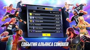 Игра предлагает множество режимов, включая одиночные и командные бои, а также еженедельные события, синхронизированные с реальными шоу WWE. Вы можете участвовать в турнирах, зарабатывать награды и поднимать своих бойцов на новый уровень. Особое внимание уделено командным матчам, где важно грамотно комбинировать персонажей разных классов.