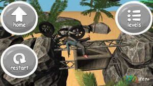 Игра предлагает четыре уникальных локации: Спорт, Пляж, Порт и Глубокий каньон. Каждая из них отличается не только дизайном, но и уровнем сложности. Преодолевайте водопроводные трубы, горящие шины и даже минные поля, чтобы доказать, что вы — лучший триал-гонщик.