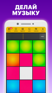 Drum Pads 24 предлагает выбрать из 24 цветных панелей, каждая из которых отвечает за свой звук или эффект. Вы можете записывать лупы, задавать ритмические последовательности и экспериментировать с высотой и темпом звука. Помимо стандартных битов, приложение позволяет пользователям создавать собственные звуковые эффекты с помощью микрофона и сразу тестировать их в действии. В процессе игры вы развиваете ловкость и чувство ритма.