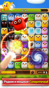 Birzzle Fever — это аркадная головоломка, где вы управляете разноцветными птицами, создавая цепочки из трех и более одинаковых. Ваша цель — очищать поле, собирая комбо и активируя взрывные бонусы. Игра начинается с выбора одной из трех птиц, каждая из которых обладает уникальными способностями, например, ускоренным набором опыта или взрывом при касании.