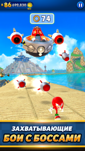 - Сражения с боссами: столкнитесь с доктором Эггманом и Заззом, используя скорость и ловкость.