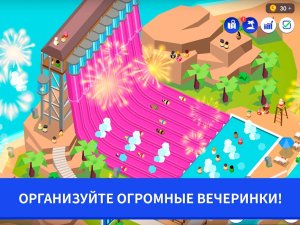Idle Theme Park Tycoon предлагает множество уникальных аттракционов, включая картинг и приключения в стиле Дикого Запада. Вы можете исследовать новые острова и строить дополнительные парки. Выполняйте задания, чтобы получать награды и открывать новые возможности для развития.
