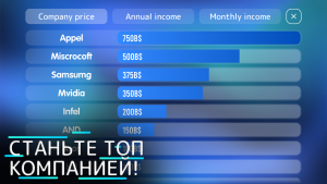 PC Tycoon 2 – это увлекательный симулятор управления, который переносит вас в центр инновационного компьютерного бизнеса. В этой игре вы возглавляете собственную компанию, создаёте компоненты для ПК и продвигаете их на рынке. Используйте свои навыки управления и стратегического мышления, чтобы стать лидером в высококонкурентной технологической индустрии.