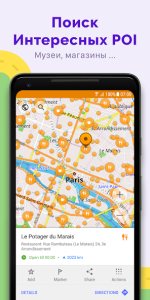 OsmAnd предлагает множество стилей карт: туристический, морской, зимний и другие. Вы можете добавлять на карту достопримечательности, рестораны или медицинские учреждения. Для любителей приключений доступны контурные линии и затенение рельефа, что делает приложение идеальным для походов.