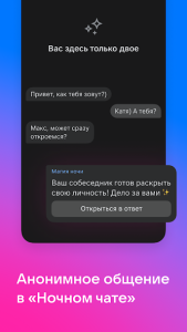 - Назначайте встречи или просто находите компанию для интересного вечера.
