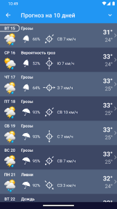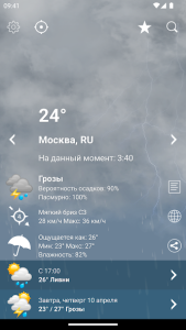 Приложение не только показывает текущую погоду, но и предупреждает о возможных экстремальных условиях. Это делает его незаменимым помощником для планирования поездок, прогулок или даже повседневных дел.