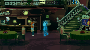 Вас ждёт классический геймплей с использованием глаголов для взаимодействия с объектами. Исследуйте город, собирайте улики, общайтесь с местными жителями и решайте головоломки. Переключение между персонажами добавляет глубины: каждый из них обладает уникальными задачами и способностями. Например, клоун Рэнсом может отвлекать внимание, а призрак Франклин — взаимодействовать с потусторонними объектами.