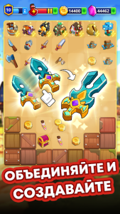 Основной механикой Medieval Merge является объединение предметов. Вы создаёте инструменты и оружие, соединяя простые элементы, чтобы получить более мощные и полезные. Мечи, молотки, топоры – всё это пригодится для выполнения заданий и защиты деревни. Но будьте внимательны: ресурсы ограничены, и вам придётся выбирать, что создавать в первую очередь.