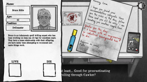 Death and Taxes — это симулятор бюрократии с элементами визуальной новеллы, где вы становитесь Мрачным жнецом. Ваша задача — решать, кому жить, а кому умереть, следуя указаниям начальства или своим моральным принципам. Каждое решение влияет на баланс мира, а также на вашу карьеру в Загробной канцелярии.
